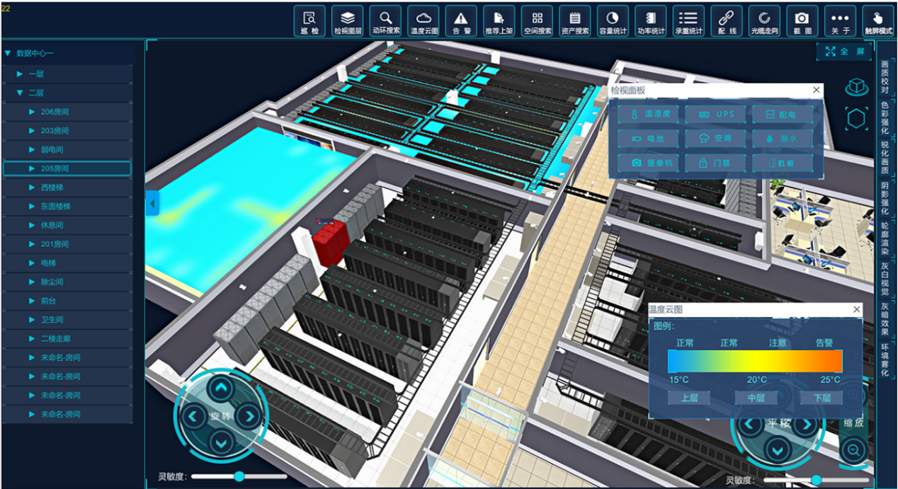 对于分散部署的机房组和偏远地区的通信基站,传统人工巡检不仅成本高昂,还往往存在响应滞后的问题。而机房动环监控系统的存在,可以让“无人值守”成为现实。长安稳盈动环监控系统可以将监测到的数据和状态,通过虚拟仿真的方式一比一搭建,而用户可以通过大尺寸液晶屏幕查看3d可视化机房效果,并对机房内的设备直接进行操作。这种有如身临其境的运维方式,让我们无需在场就可以进行全面掌控和远程处理,大大降低了人工成本,提高了管理效率。(点击链接立刻获取个性化方案及报价:https://www.chengzijianzhan.com/tetris/page/6826655141664931853/)